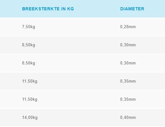 De volgende lijndiktes zijn leverbaar: 0,28mm, 0,30mm, 0,35mm of 0,40mm!