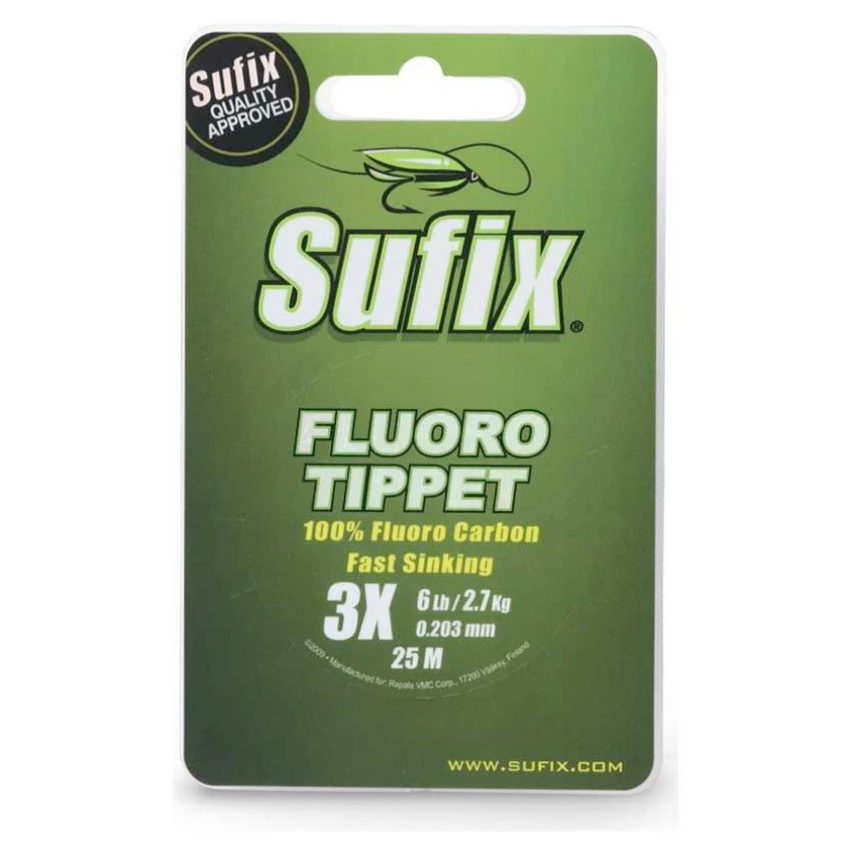 Sufix Fluoro Tippet is een 100% fluorocarbon tippet, ontworpen voor het vliegvissen. De tippet is een zeer dunne maatlijn, die de aanhaallijn verbindt met de vlieg, het eigenlijke aas. Houd er rekening mee dat de maat van de tippet niet dikker mag zijn dan het dunste deel van de taps toelopende aanhaallijn. Deze topkwaliteit fluorocarbon heeft een zeer lage brekingsindex vergelijkbaar met water, waardoor het vrijwel onzichtbaar is. Het zinkt sneller dan nylon waardoor de vlieg veel sneller en onopvallend gepresenteerd kan worden. Ben je een vliegvisser? Zo ja, dan heb je dit nodig!